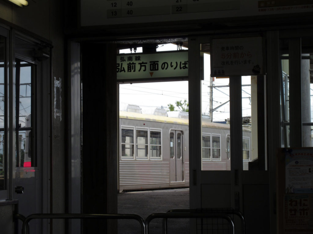 次の目的地である、2泊目の宿泊地である大鰐温泉を目指すため、弘南線沿線の駅前温泉めぐりはここでおしまい。1時間後の弘前行きの列車に乗り、弘前へと戻る。