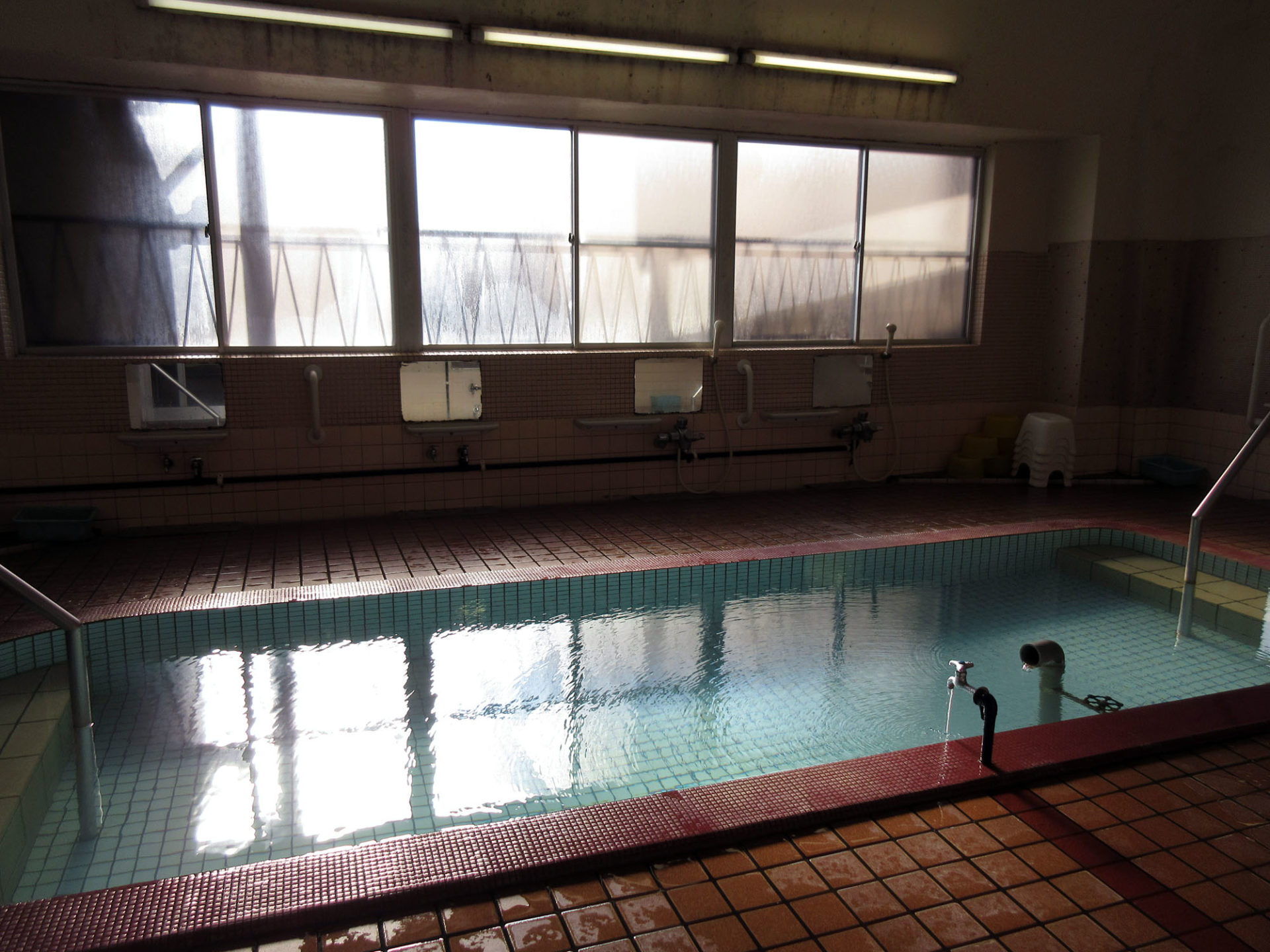 館田温泉のお湯はとても個性的で、湯の色は薄黄色く、ほんのりとしたモール臭がする。そして、すべすべのヌルっとした肌ざわりなので、強めのアルカリ性のお湯なのだろう。とても個性的なお湯で、個人的にはけっこう好きなお湯だ。