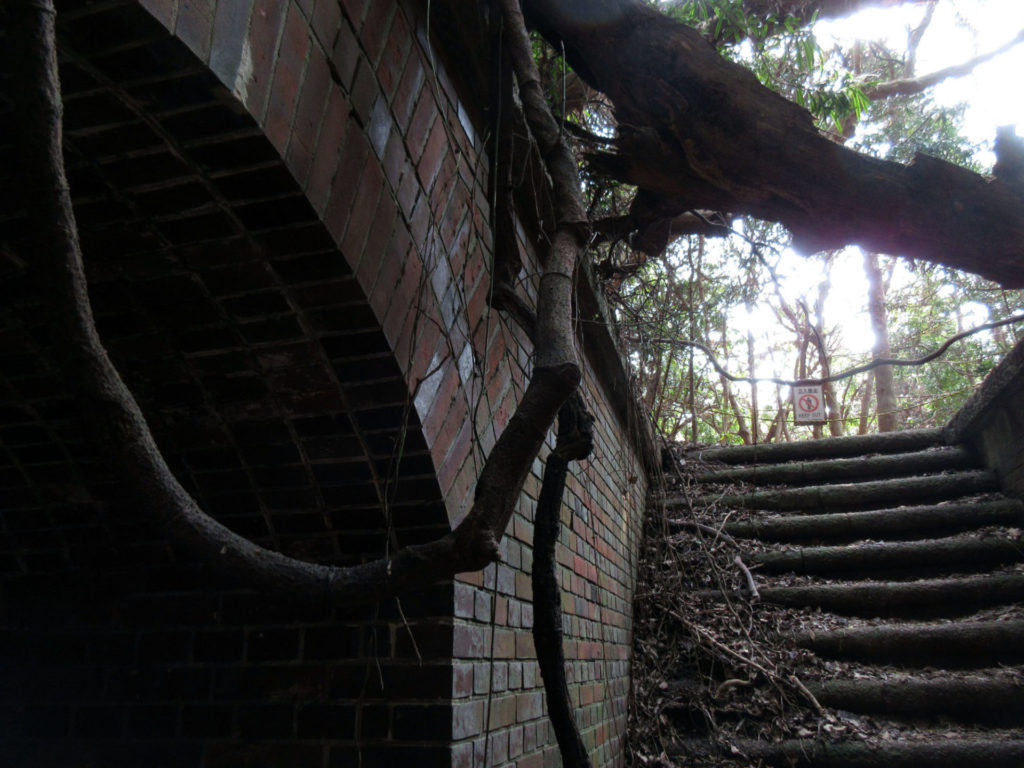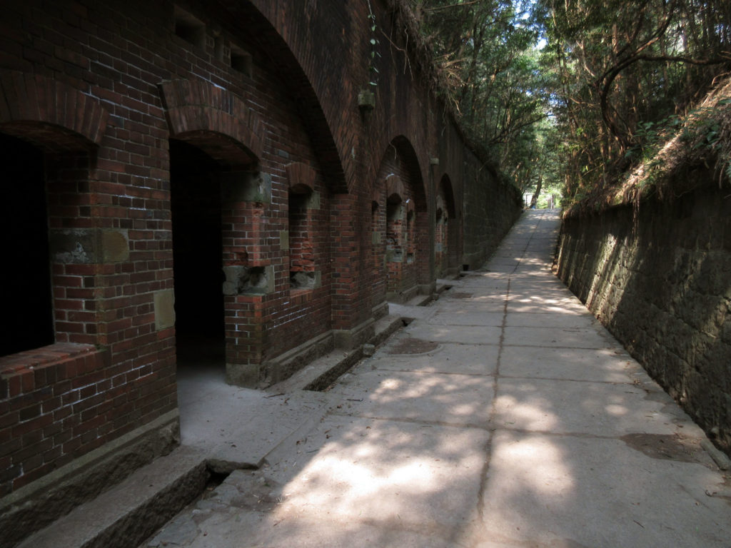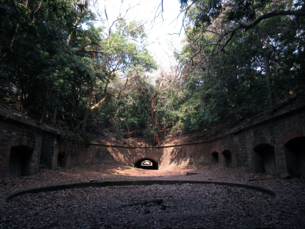 息を切らしながら、せっせと山を登りきった先には、島内で最大の見どころである弾薬支庫跡と第3砲台跡が出現する。人気の撮影スポットだ。