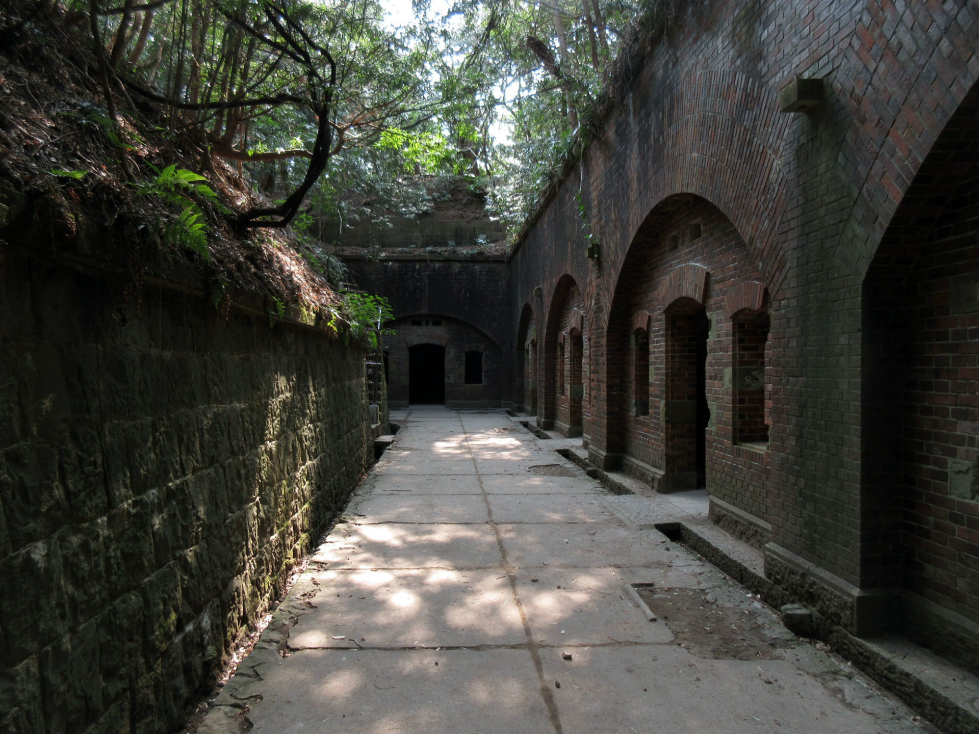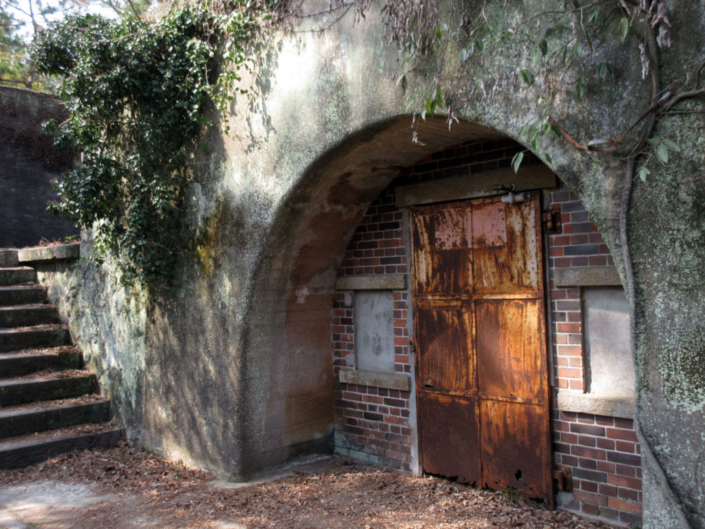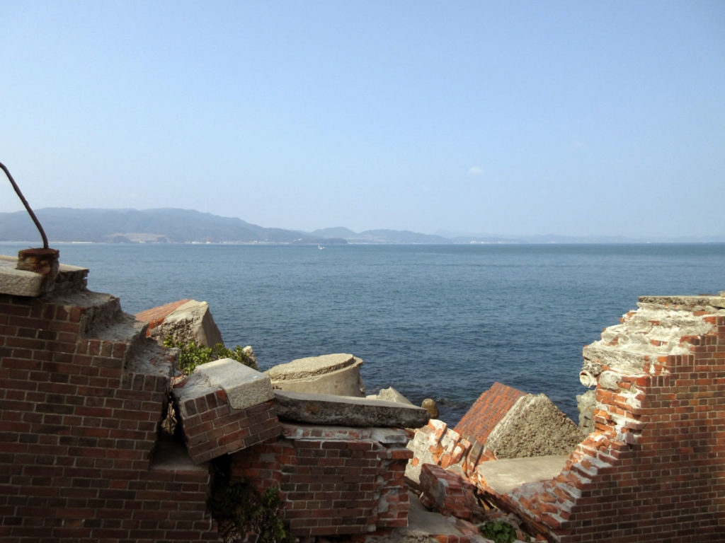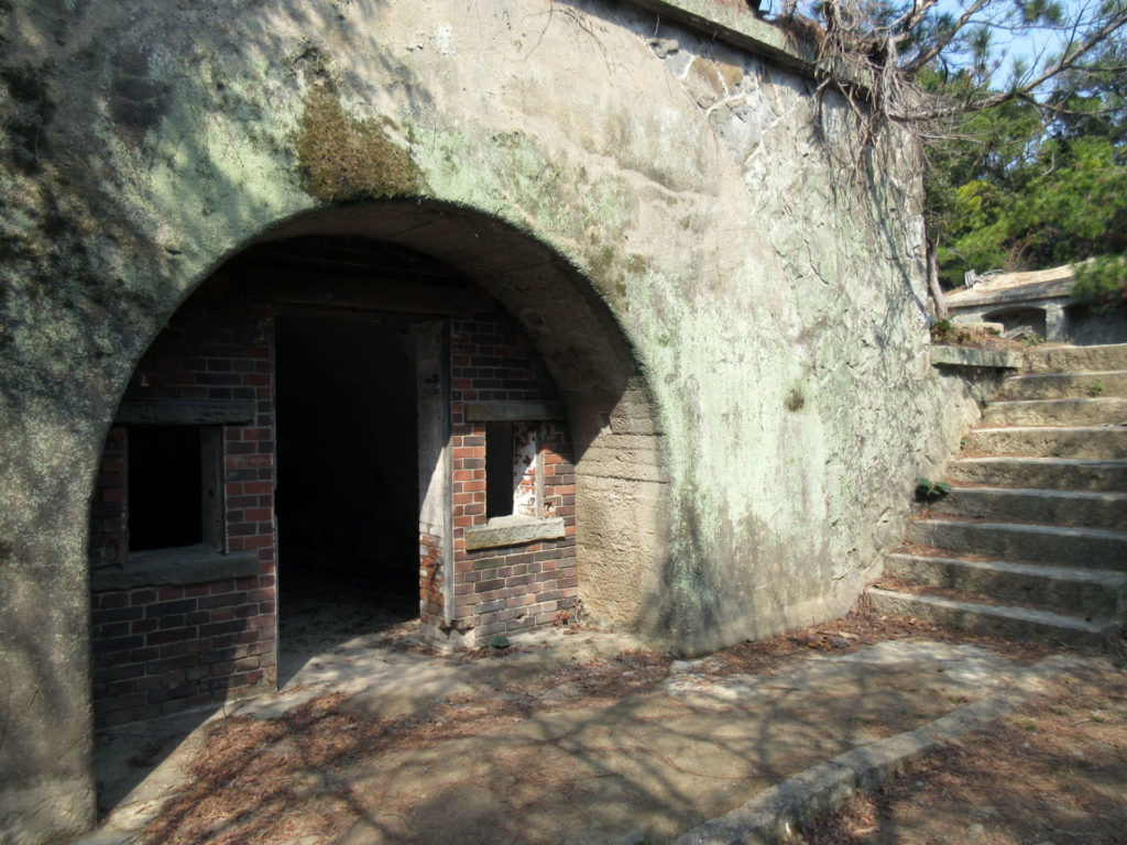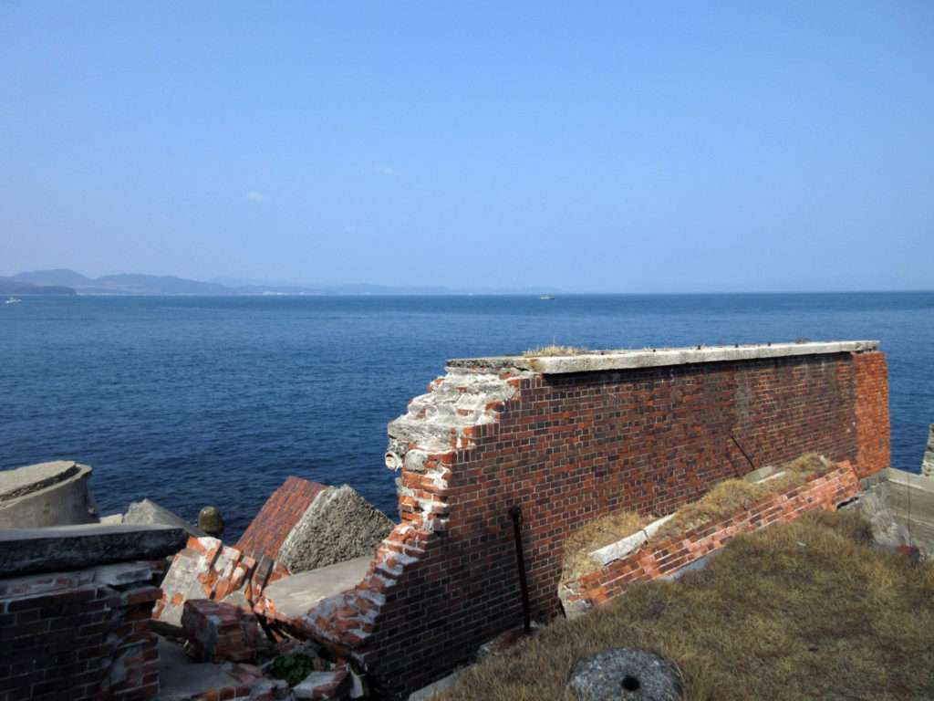ここは太平洋戦争後に爆破処理されたので、崩れ落ちかけた廃墟となっている。柵で仕切られているので、近づくことはできないが、海を背景とした廃墟として「映え」な撮影スポットにもなっている。海上側からも見てみたいものだ。