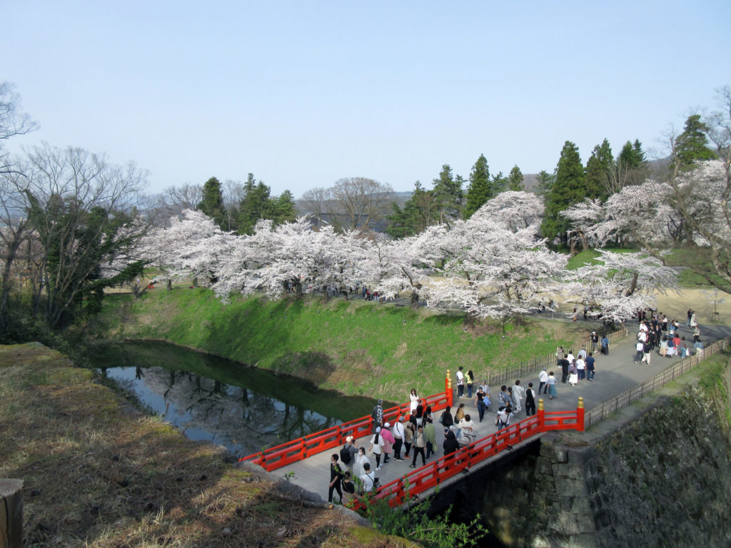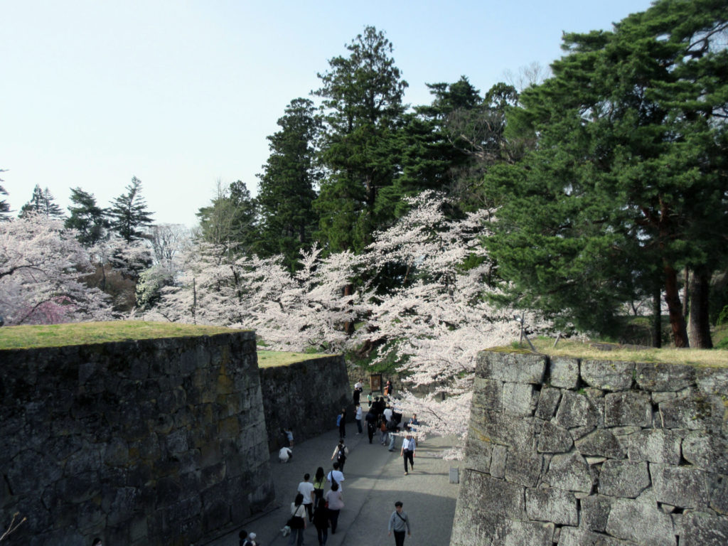 磐梯熱海でいきなりハシゴ温泉をした後は、磐越西線で会津若松へ。駅前の旅館を予約していたが、チェックインまで時間があったので、せっかく桜も見頃だし…と、会津若松城(鶴ヶ城)まで周遊バスで市内観光。