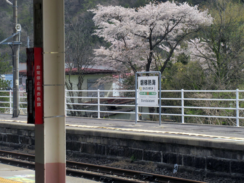 4月某日。東京駅から新幹線自由席で郡山まで、そこから磐越西線に乗り継いで磐梯熱海へ。郡山でスムーズに乗り継ぎができる時間帯であれば、2時間弱で着く。