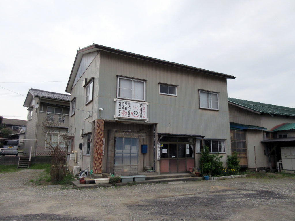 外観はただの民家のようであり、「炭酸食塩泉 新津温泉」の看板が掲げられていなければ、スルーしてしまいそうだ。見た目のボロさに期待とワクワクが止まらない。