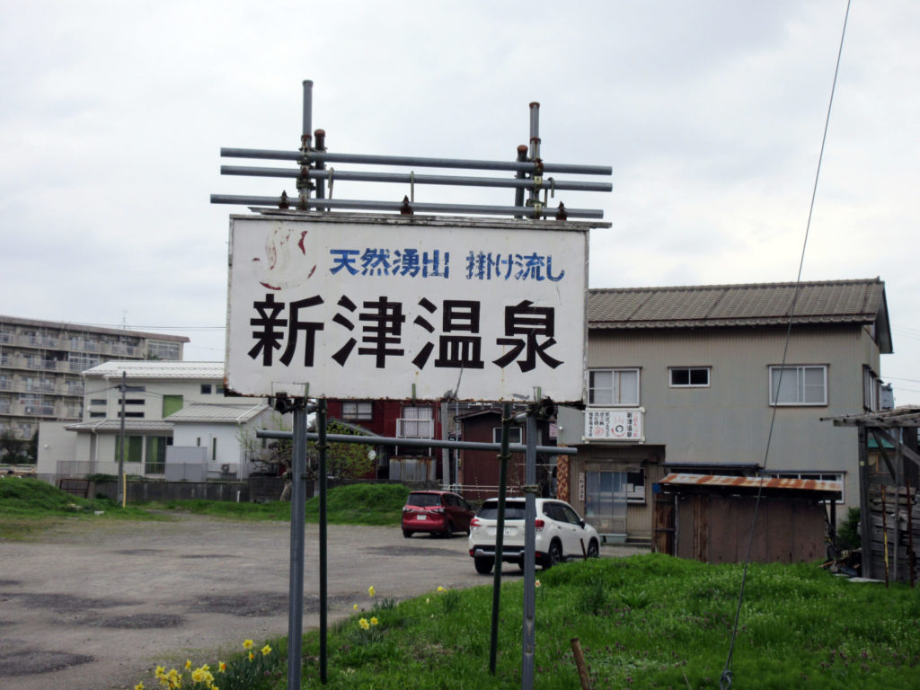 この日の目的地は、終点の新津駅から歩いて行ける「新津温泉」だ。歩いて15分くらいなので、駅前温泉というわけでもないが、珍温泉好きのマニアックな温泉愛好家にはよく知られた日帰り温泉で、とにかく一度は訪れておきたいと思っていた場所。
