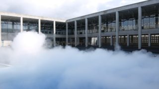 もちろん、同時に千人も入れるわけではないが、とても広々していて気持ちが良い。天井も高いのが良い。源泉は超高温で、2キロ離れた沢の水を使って温度調整しているということなので、雨が降ると濁る。そして、この日は雨が降っていたので、濁っていた。
