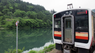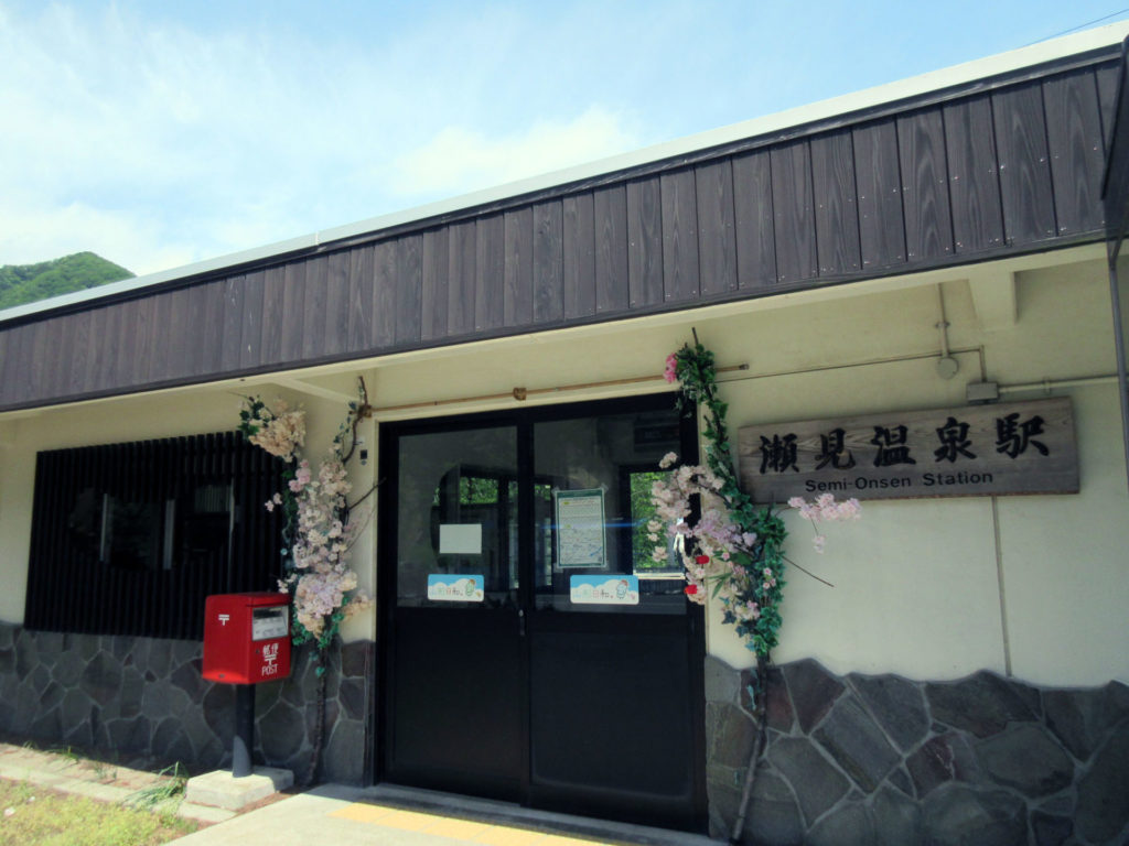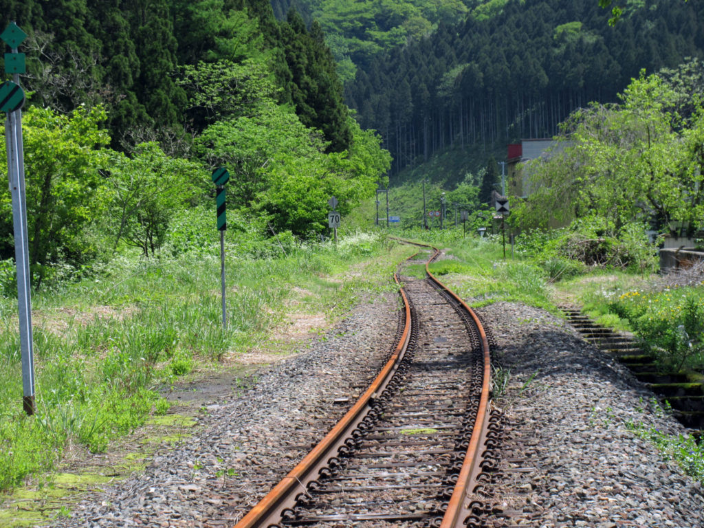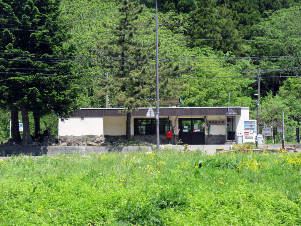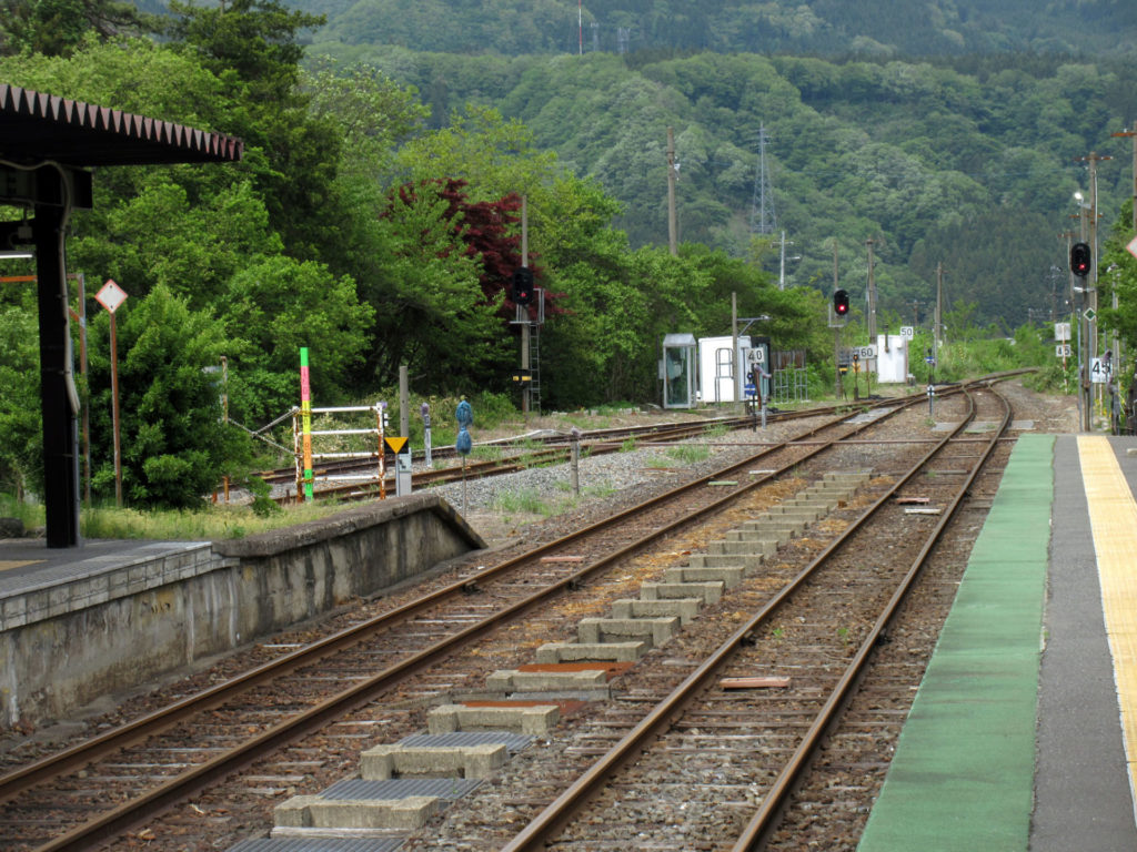 ここでも鉄道は不通区間となっているので、代行バスでの移動となる。瀬見温泉駅の背後は山で、鉄路は緑の向こうへと続く。ぜひ列車旅をしてみたかったものだ。