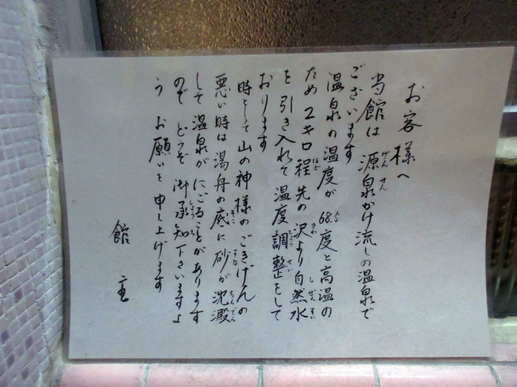 一応、今でも混浴風呂という体裁だが、男女専用に分かれる時間帯も設けられているので、女性は専用の時間に入り、あとはほぼ男性が使っている…ということのようだ。