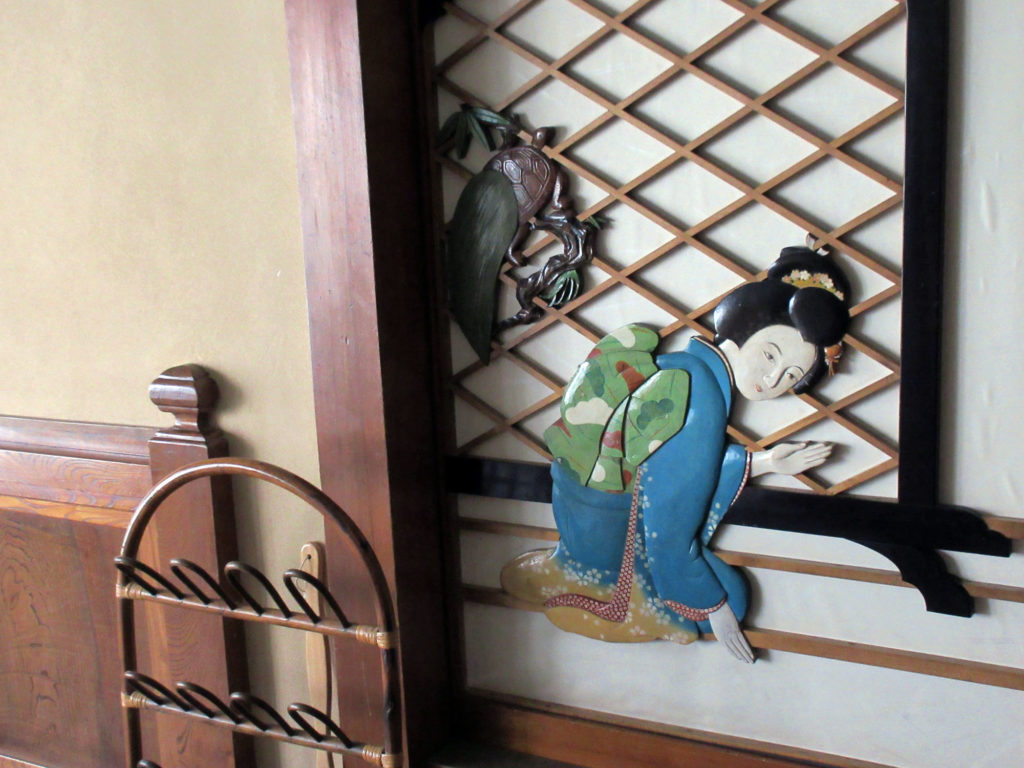 喜至楼の最大の魅力は、やはり、その独特の旅館建築。重厚感のある本館玄関、階段が入り組んだ迷路のような空間、ほの暗い廊下…そして、館内の壁などには歴史を感じる凝った意匠が施されていて、それらを探しているだけでも飽きない。